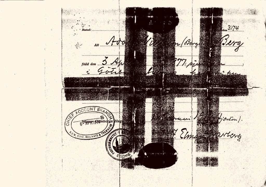 Documents from the Swedish Archives confirm that Grandfather Berg was born Adolf Wilhelm Bergman on the 3 April 1877 in Gothenburg (Göteborg).