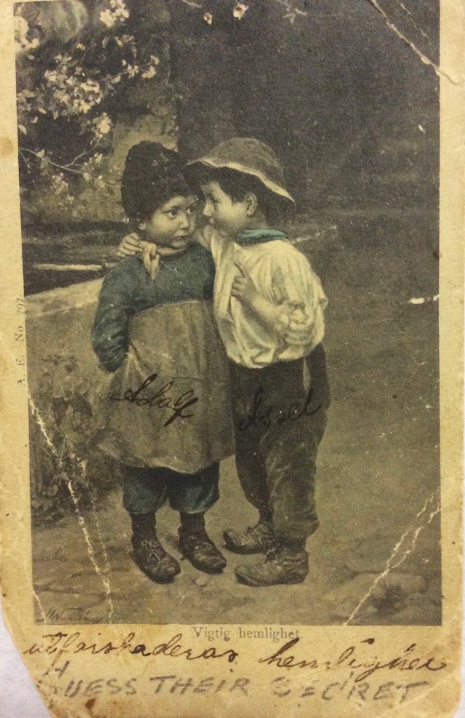 Axel wrote his and Adolf’s names on the characters in the postcard, but, interestingly, he chose the older character as himself; Adolf was a year older than Axel. I wonder what the secret was that Axel was telling Adolf?